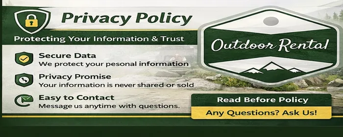 This Privacy Policy ("Policy") explains how Outdoor rental collect, use, and disclose personal information about you. This Policy also describes the privacy rights and choices you have with respect to your personal information. We encourage you to review this Policy regularly to stay informed about our information practices and the choices available to you. If you have questions about this Policy or our information practices,